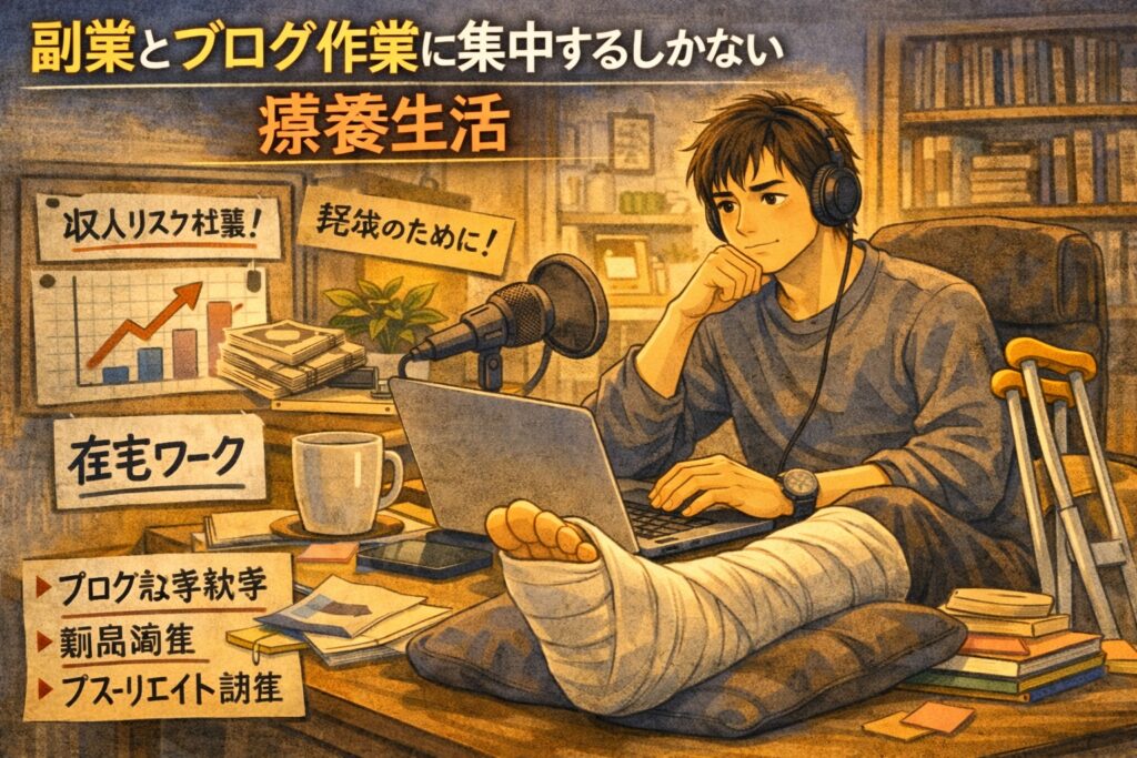 さらに、今回の怪我は働き方に対する考え方にも影響を与えました。身体の状態によって行動や仕事が制限される現実を経験したことで、会社に依存した働き方のリスクや、在宅でも収入に繋がる行動の重要性を強く認識するようになりました。(内部リンク:副業に向き合う療養生活の記録)