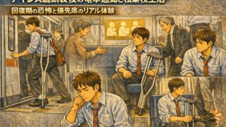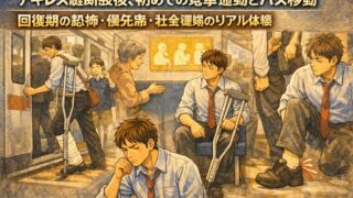 アキレス腱断裂後、初めての電車通勤とバス移動|回復期の恐怖・優先席・社会復帰のリアル体験