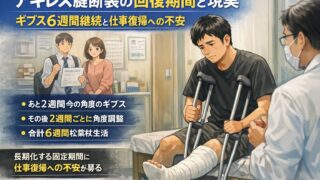 アキレス腱断裂の回復期間と現実|ギブス6週間継続と仕事復帰への不安